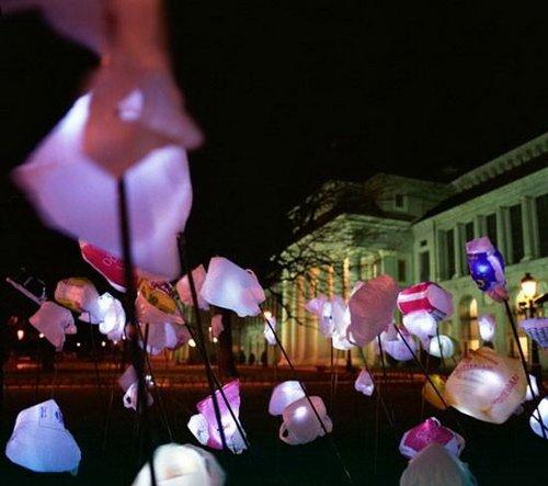 這些塑料袋路燈具看上去就像是遍地盛開(kāi)的野菊花,漂亮異常。