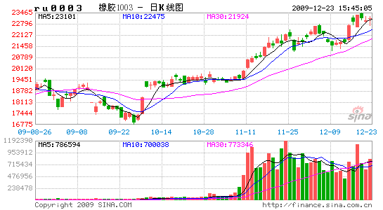 我們認為,在2010 年上半年內(nèi),市場中充裕的投機資金還將可能與投資者強烈的通脹預(yù)期聯(lián)手,推動商品市場整體繼續(xù)走強。在全球主要經(jīng)濟體政府所采取的寬松貨幣政策真正轉(zhuǎn)向之前,2010 年的上半年力量充沛的多頭資金還將推動滬膠期價振蕩走強。