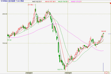 圖一2008-2009 年文華商品指數(shù)周K 線