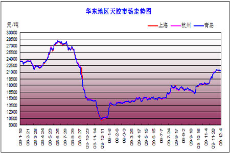 圖為華東地區(qū)天然橡膠現(xiàn)貨市場走勢圖。(圖片來源:隆眾石化商務(wù)網(wǎng))