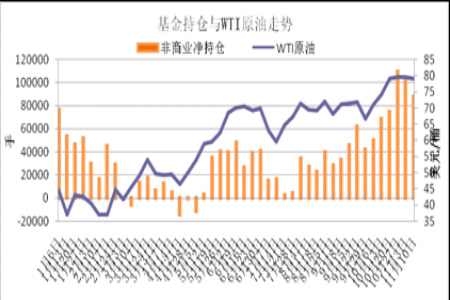 投機交易能提高原油市場的流動性,但在原油的暴漲暴跌中也起到推波助瀾的作用,特別是大型金融機構控制的投機基金。CFTC擬通過限制投機交易頭寸等措施加強能源衍生品交易的監管,但具體措施尚未出臺。從目前的持倉情況來看,投機基金凈多頭寸呈現逐步下滑的態勢,由1萬余手的年內新高下滑至目前的8000余手,在某種程度上說明投機基金認為80美元的油價已處高位,短期內無意再次推高。