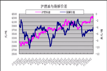圖為滬燃油與裂解價差走勢圖。(圖片來源:中信建投期貨)