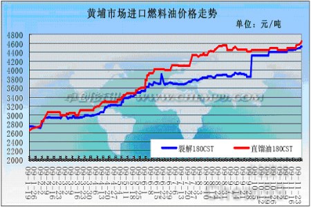 圖為黃埔市場進口燃料油價格走勢圖。(圖片來源:卓創資訊)