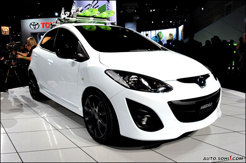 官方的Mazadaspeed2?當(dāng)然不是,但是比官方的車更吸引眼球,它們是2011款新馬自達(dá)2改裝版。這兩款車的設(shè)計(jì)靈感來自賽車,但是它們可以作為日常的城市交通工具。前者外觀帶有更具侵略性的前保險(xiǎn)杠和前擾流器。