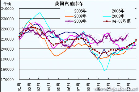 圖為美國汽油庫存走勢圖。(圖片來源:北京中期)