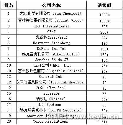 北美地區(qū)08年油墨銷售額前20名榜單出爐