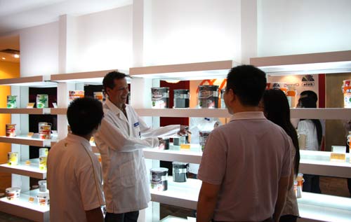 2009年4月21日,德國梅菲特工業(yè)集團技術專家JOCHENKUHN先生在中國區(qū)總部的組織下親臨成都,與德國都芳漆戰(zhàn)略合作伙伴東藝日盛、業(yè)之峰進行進一步溝通,推薦切實呵護健康,提高涂裝質量的新產品,新工藝,并與成都各一線裝飾公司進行交流。
