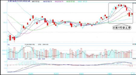 4月份,日膠呈現先漲后跌走勢。日膠指數月初從151日元開始震蕩走高,最高沖至179.1日元,隨后出現大幅下跌,月底時期價已接近月初水平。月K線帶有明顯的上影線。日元在中下旬轉為升值,使得日膠承受較大的壓力。本月日元走勢為先跌后漲。截止26日,本月美元對日元開盤98.8,最高沖至101.43,最低96.66。