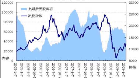 圖為天膠庫存價格走勢圖。(圖片來源:格林期貨)