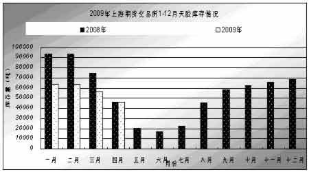 圖為2009年上海期貨交易所1-12月天膠庫存走勢圖。(圖片來源:中誠期貨)