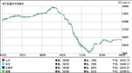 順丁橡膠在本月價(jià)格變化不大,月中成交略顯活躍,但月末又歸于平淡。4月下旬,月中國(guó)內(nèi)各地市場(chǎng)順丁膠行情總體表現(xiàn)疲軟,交投氣氛清淡。受終端用戶對(duì)順丁膠需求逐漸趨向遲緩、進(jìn)口膠仍在陸續(xù)到貨使得市場(chǎng)業(yè)者對(duì)后市普遍持謹(jǐn)慎心態(tài)、以及天然膠市場(chǎng)行情轉(zhuǎn)跌等因素的影響下,價(jià)格穩(wěn)定在13000元/噸左右。膠市場(chǎng)成交進(jìn)一步趨向遲緩,業(yè)者表示用戶詢盤興趣明顯下降、出貨不暢。