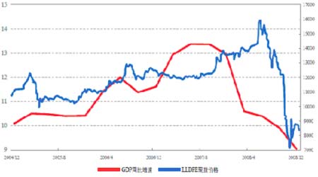 圖為GDP同比增長與LLDPE現(xiàn)貨價格走勢圖。(圖片來源:中瑞金融)