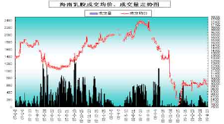 圖為海南乳膠成交價、成交量走勢圖。(圖片來源:北京期貨)