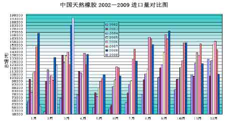 中國天然橡膠2002-2009 進口量對比圖