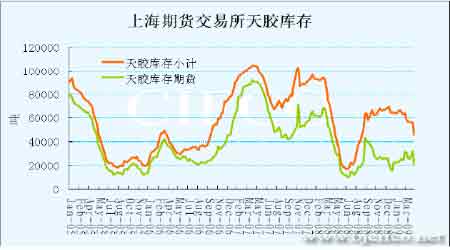 圖為上海期貨交易所天膠庫存走勢圖。(圖片來源:北京期貨)