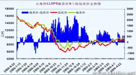 圖為LLDPE期貨價格與上海地區(qū)現(xiàn)貨價格走勢圖。(圖片來源:卓創(chuàng)咨詢)
