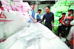 20日上午,鯉城區環保局、鯉城開元工商所等部門聯合行動,在開元街道星湖路66號內一家快餐盒批發點內查到了18萬個不可降解的泡沫塑料快餐盒。據了解,這種快餐盒如果裝入高溫食品,會產生致癌物質。