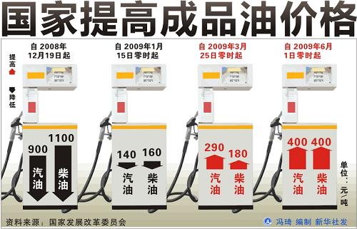 據(jù)發(fā)展改革委價(jià)格司有關(guān)負(fù)責(zé)人介紹,近兩年來(lái),為減輕國(guó)際油價(jià)大幅上漲對(duì)國(guó)內(nèi)市場(chǎng)的影響,國(guó)家對(duì)成品油價(jià)格進(jìn)行了適當(dāng)調(diào)控。去年6月20日國(guó)內(nèi)成品油價(jià)格每噸上調(diào)1000元后僅相當(dāng)于原油價(jià)格每桶83.5美元。此后,即使國(guó)際原油價(jià)格一路上行,達(dá)到每桶147美元時(shí),我國(guó)零售油價(jià)一直沒(méi)有上調(diào)。