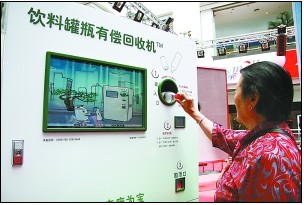 日前,飲料瓶罐有償回收機在世紀金源購物中心上崗,過往市民爭相體驗瓶子變現金的樂趣。據了解,今年海淀區將在商場、超市、影院、學校、公園、體育場館等公共場所免費安裝50臺飲料瓶罐有償回收機。