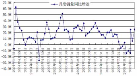 圖為中國汽車月度銷售量同比增速圖。(圖片來源:格林期貨)