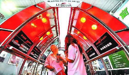 昨日,在展區中,一個安裝著多盞大燈的“棚子”吸引了眾多參觀者的注意,不少參觀者都擠在棚子下面,有人還不時伸手去感受燈光的溫度。