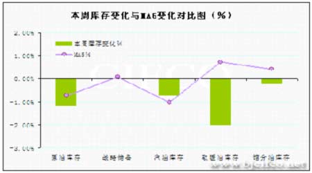本周庫存變化與MA5變化對比圖%。(來源:北京中期)