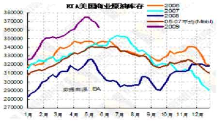 近期美國(guó)幾個(gè)重要經(jīng)濟(jì)數(shù)據(jù)的好轉(zhuǎn)給市場(chǎng)對(duì)未來(lái)經(jīng)濟(jì)復(fù)蘇帶來(lái)十足信心,使得作為風(fēng)險(xiǎn)規(guī)避工具之一的美元避險(xiǎn)功能消退,美元指數(shù)跌破80大關(guān)。市場(chǎng)資金從避險(xiǎn)工具美元撤離,大部分資金流入商品市場(chǎng),最后導(dǎo)致國(guó)際原油節(jié)節(jié)攀升。據(jù)最新的CFTC報(bào)告顯示截至5月26日基金多頭較前一周增加10190手,基金空頭較前一周增加5305手,而兩者之間的差額基金凈多頭為40122手,較前一周增加5000手左右。從報(bào)告數(shù)據(jù)結(jié)果看,近兩周原油多頭力量遠(yuǎn)遠(yuǎn)超過(guò)空頭,說(shuō)明市場(chǎng)對(duì)未來(lái)油價(jià)看好。