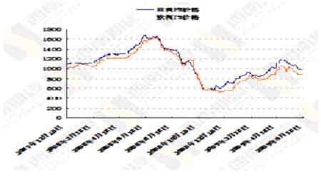本周中纖報價最低為6900元,最高為6950元,最高與最低價格之間相差為50元。本周PTA現貨價格較上周同比上漲0.28%。亞洲PX自995美元下滑至975美元,較上周出現20美元的下跌,但價格下跌不明顯;本周歐洲PX保持在875美元FOB鹿特丹,較上周同樣出現5美元左右的跌幅,總體來說本周外盤PX價格維持不變,亞洲PX價格小幅回落。