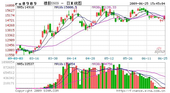 天然橡膠期貨和現(xiàn)貨價(jià)格在去年第三季度經(jīng)歷了飛流直下的急速暴跌后旋即企穩(wěn)反彈。滬膠主力合約期價(jià)于2008年12月8日下探8650元/噸一線附近后便拉開了上漲的序幕;直至2009年5月7日滬膠主力合約期價(jià)觸及日內(nèi)最高點(diǎn)16042元/噸時(shí),其反彈幅度已高達(dá)85.46%。