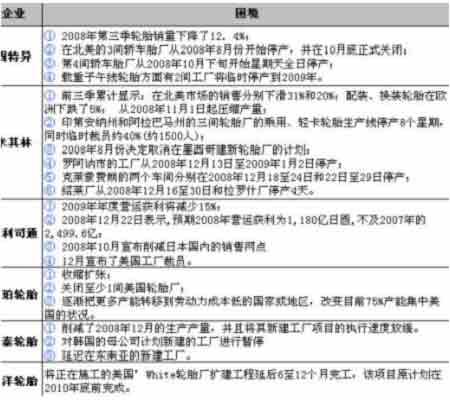 圖為全球主要輪胎生產企業所面臨的困境對照表。(圖片來源:倍特期貨)