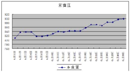 圖三、東南亞乙烯6月份走勢圖