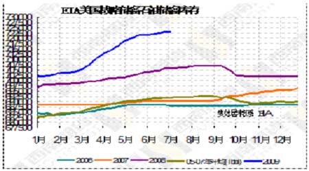 截至7月3日當周,美國汽油庫存增加190萬桶至2.131億桶,增幅超過分析師預估的增加60萬桶; EIA報告稱美國餾分油庫存增加370萬桶至1.587億桶,分析師預估為增加200萬桶,餾分油庫存觸及25年高位。最新數據略低于1984年12月28日當周達到的1.595億桶。同時,煉廠產能利用率下滑0.2個百分點至86.8%,分析師預期為下降0.1個百分點。