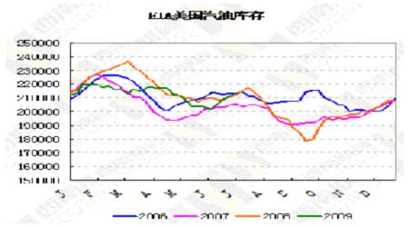 圖為EIA美國汽油庫存走勢圖。(圖片來源:西南期貨)