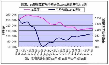 09年7月上半月國內PP、PE主要市場總庫存整體出現增加,較09年6月30日增幅在1.54%。其中PP庫存出現小幅增加,較上月底增幅在1.03%,PE庫存出現小幅增加,較上月底增幅在1.65%。區域來看,南方庫存小幅減少,較上月底減幅在1.01%,而北方庫存大幅增加,較上月底增幅在8.42%。 以下是庫存變化走勢圖: