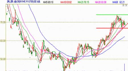 雖然基本面不利于油價上漲,但短期內(nèi)油價走勢卻受基本面影響有限,主要是外部因素支撐強勁。金融危機見底,以及世界各國大量的向市場注入流動性后,隨著經(jīng)濟的逐漸恢復(fù),推升了后期的通脹預(yù)期,致使避險資金開始從美元中撤出,而被削弱的美元亦支撐了商品價格。同時,投機與避險資金開始買入商品以及股票,選擇風(fēng)險相對更大一些的市場,所以增添了原油市場中的溢價成分,造成了油價脫離基本供需的上漲。預(yù)計接下來一段時間這些影響油價的因素還難以改變,而油價也會因多空因素間或發(fā)力表現(xiàn)的更加震蕩,階段性新高也許還會出現(xiàn)。不過由于目前的漲勢缺乏需求的支撐,所以在上行的過程中價格下跌的風(fēng)險也在逐漸累加,值得注意。目前NYMEX原油上方阻力位分別位于74和80美元一線,下方支撐在66美元附近。
