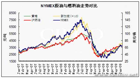 圖為NYMEX原油與燃料油走勢對比圖。(圖片來源:北京中期)