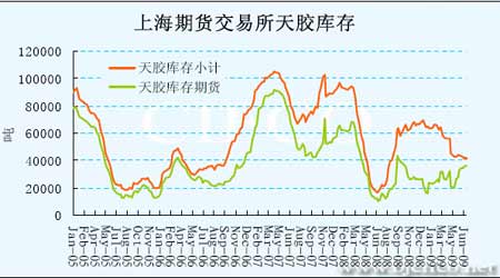 圖為上海期貨交易所天膠庫存走勢圖。(圖片來源:北京中期)