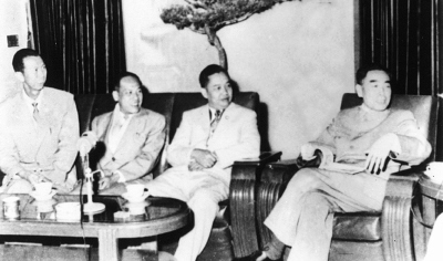 周恩來總理接見李引桐(左一)一行。