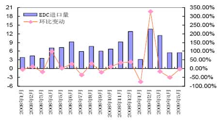 圖為EDC進口量及環比變動圖。(圖片來源:北京中期)