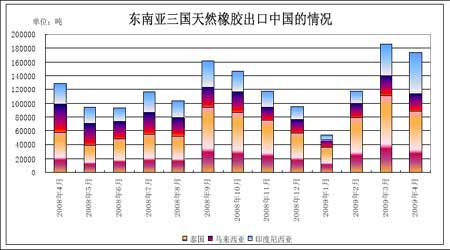 今年由于東南亞產膠國較往年降雨量較大,影響了橡膠的供應,今年以來泰國最大的橡膠貿易市場只有3 天的橡膠供應量超過100 噸,泰國、印尼和馬來西亞1—5 月份的橡膠產量和出口量較往年都有大幅減少,從而帶動東南亞橡膠市場上的橡膠價格在高位震蕩,近來受美國車市觸底反彈以及歐洲、日本和中國采購商在市場上采購橡膠的影響,東南亞橡膠價格有上升態勢。