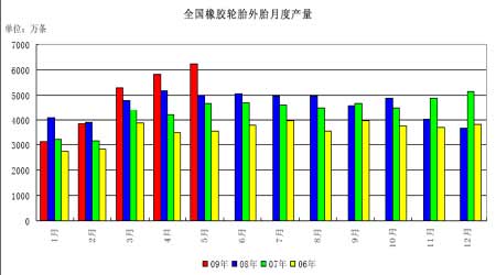 圖為全國橡膠輪胎外胎月度產量走勢圖。(圖片來源:首創期貨)