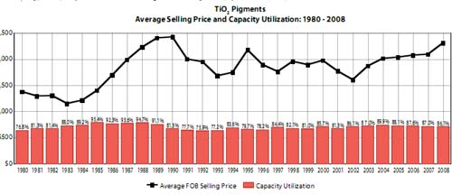 1980-2008全球鈦白粉銷售價格和市場需求變化