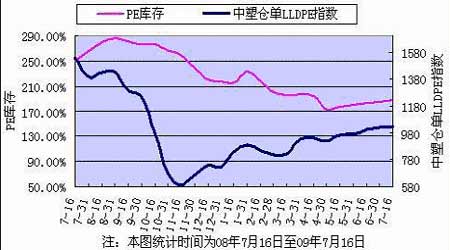 09年7月上半月國內(nèi)PE主要市場總庫存整體出現(xiàn)增加,較09年6月30日增幅在1.54%。PE庫存出現(xiàn)小幅增加,較上月底增幅在1.65%。區(qū)域來看,南方庫存小幅減少,較上月底減幅在1.01%,而北方庫存大幅增加,較上月底增幅在8.42%。