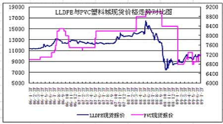 圖為LLDPE與PVC塑料現貨價格走勢圖。(圖片來源:中瑞金融)