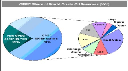 圖5、OPEC各成員國原油產量及比重