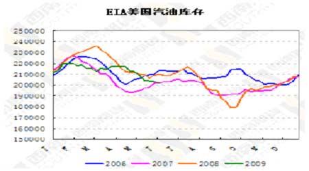 圖為EIA美國汽油庫存走勢圖。(圖片來源:西南期貨)