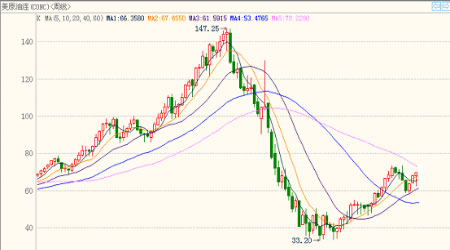 7月公布的美國6月就業人口降幅超過預期,國際原油需求低迷,特別是美國商品期貨交易管理委員會最近的一份聲明令投機資金大量撤離,原油價出現大幅波動。7月原油價格自70美元/桶之上,快速回落至60美元/桶之下,之后又反彈至69.5美元/桶,上演了一出過山車行情,走出一個大“V”型。油價的漲跌吸引著眾多投資者的目光,經過了6月的橫盤,7月的“V”型反轉,8月油價筆者認為振蕩上行的可能性較大,總體易漲難跌。 圖一:美原油連續周K線圖
