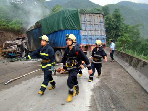 8月10日早晨5點半左右,319國道南靖縣金山往和溪12公里處,發生一起大貨車與槽罐車相撞事故,貨車司機當場死亡,另有4名人員受傷。事故還造成槽罐車上裝載的15噸甲醇泄漏起火,火勢快速蔓延,爆炸可能一觸即發。