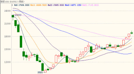 同樣,從滬膠前20名多空主力持倉上看,在期價上漲的同時,多空主力均大幅增倉。空頭大舉增倉是為了避免徹底失敗,出自其本能的抵抗,同時也迫使看多的資金更多地轉向遠月。從盤面的走勢看,空頭的這種策略取得一定成效,0911合約漲幅小于遠月。1001合約受到看多資金大力追捧,而空頭無暇打壓,因此該合約漲幅大于0911合約。