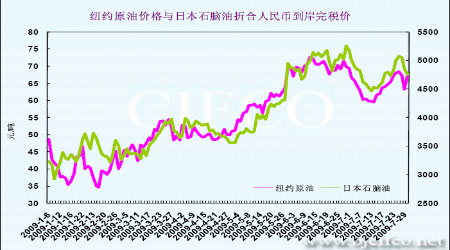 石腦油是從原油到乙烯的中間環節。作為生產石腦油的直接原料,原油的價格與石腦油價格有著最為直接的關系,它們的走勢也非常的接近。以紐約原油與新加坡、日本石腦油的價格為例,最新的分析顯示,紐約原油價格與新加坡石腦油價格的相關系數達到了0.90,而與日本石腦油價格的相關性更高,為0.92,下圖式紐約原油價格與日本石腦油走勢對比圖。可以看出,整個7月份,紐約原油與日本石腦油的走勢幾乎完全一致。